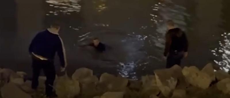 Egy nyíllal átlőtt fejű kacsa lebeg a Balaton kristálytiszta vizében.